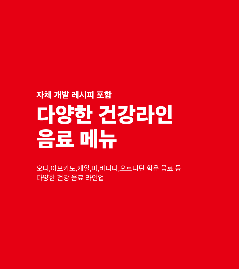 ✔️ 건강 메뉴(음료,샌드위치,디저트) 지속적 개발 및 확대 중